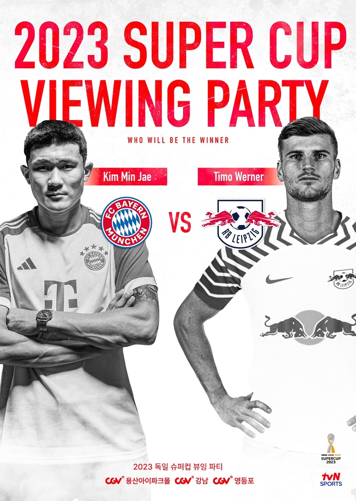 이번 ‘2023 독일 슈퍼컵 뷰잉파티’는 CGV용산아이파크몰, 영등포, 강남에서 만나볼 수 있다. 바이에른 뮌헨 이적 후 첫 출전을 기대하는 김민재 외에도 자말 무시알라, 마티아스 데 리흐트, 조슈아 키미히, 세르주 그나브리 등 스타 선수들의 플레이를 대형 스크린으로 보다 생생하게 즐길 수 있다.