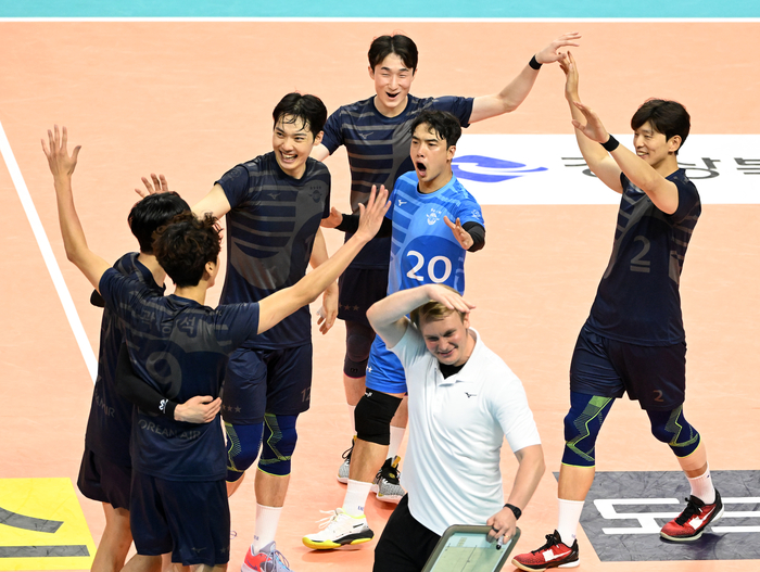 베스트 전력이 아니었다. 연령별 대표팀과 A대표팀 차출로 인해 10명의 선수로 대회를 치를 수밖에 없는 상황. 그럼에도 탄탄했다. 세터 유광우가 중심을 잡았고, 아웃사이드 히터 곽승석과 이준, 미들블로커 조재영과 이수황, 아포짓에는 진지위가 자리했다.
