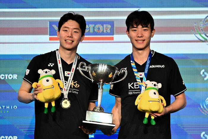 주인공은 세계랭킹 9위인 서승재(25)-강민혁(24·이상 삼성생명)이다. 이들은 6일 호주 시드니 올림픽 파크의 퀘이센터에서 열린 2023 호주오픈 남자복식 결승에서 5위인 일본의 호키 다쿠로-고바야시 유고를 2-0(21-17, 21-17)으로 제압하고 우승했다.