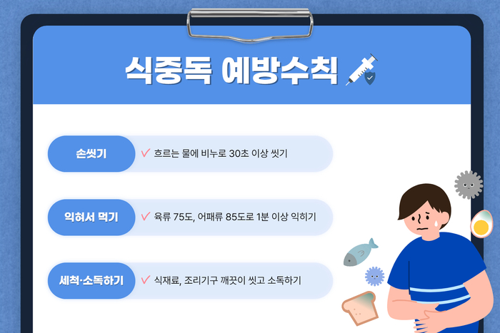 식품 위생 수칙 준수하고, 충분한 수분 섭취 중요