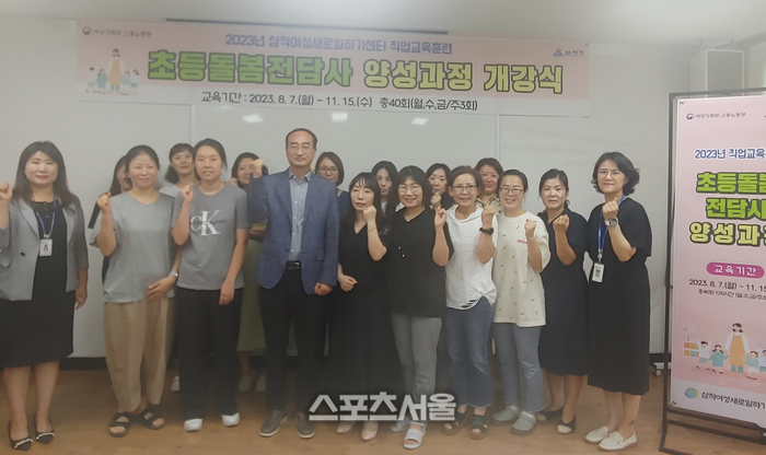 [스포츠서울ㅣ삼척=김기원 기자] 삼척시 여성새로일하기센터는 경력단절여성 및 미취업 여성을 대상으로 초등돌봄교육 실무에 필요한 교육을 통해 역량을 갖춘 전문인력을 양성하여 맞춤형 돌봄 전문가를 배출해 취업 성공을 목표로 초등돌봄전담사 양성과정 수강생 16명을 모집하여 8월 7일 개강했다.
