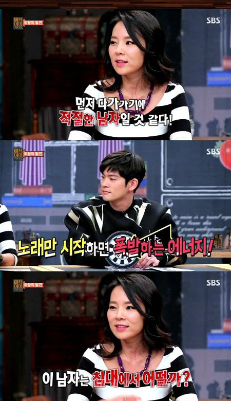 곽정은은 장기하를 보며 "엄친아 분위기가 있어 다가가기 힘들 것 같았는데 라디오에 출연하다보니 먼저 다가가기 적절한 남자였다. 노래를 시작하면 폭발적인 에너지가 나오는데 '이 남자는 침대에서 어떨까'라는 상상을 한다"고 말해 주위를 경악하게 만들었다.