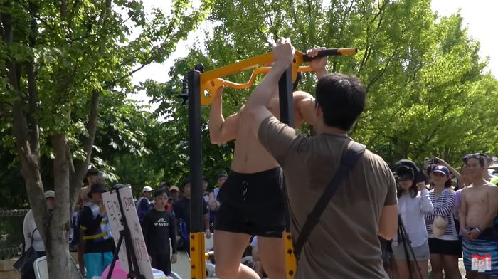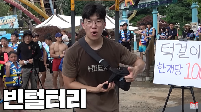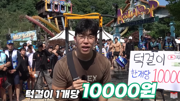 지난 6일 유튜브 채널 ‘지피티’에는 ‘턱걸이 1개당 10,000원을 드립니다 (캐리비안베이)’라는 영상이 게재됐다.