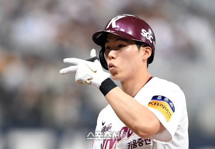 키움 히어로즈 김혜성이 9일 고척스카이돔에서 열린 2023 KBO리그 롯데 자이언츠와 경기 3회말 무사 2루 상황에서 롯데 선발 박세웅을 상대로 1타점 역전 적시타를 치고 세리머니를 하고 있다. 2023. 8. 9. 고척 | 박진업기자 upandup@sportsseoul.com