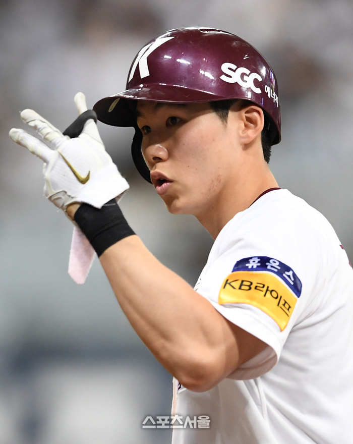 키움 히어로즈 김혜성이 9일 고척스카이돔에서 열린 2023 KBO리그 롯데 자이언츠와 경기 4회말 무사 롯데 최이준을 상대로 안타를 친 뒤 세리머니를 하고 있다. 김혜성의 경기 세 번째 안타. 2023. 8. 9. 고척 | 박진업기자 upandup@sportsseoul.com
