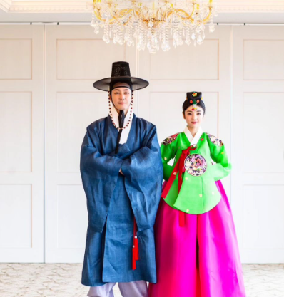 덧붙인 사진에는 곱게 한복을 입은 심형탁과 그의 일본인 아내 히라이 사야가 서있다.