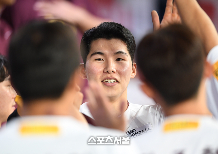 키움 히어로즈 김혜성이 10일 고척스카이돔에서 열린 2023 KBO리그 롯데 자이언츠와 경기 5회말 2사 1-2루 상황에서 김휘집의 2타점 적시타에 득점을 한 뒤 동료들과 하이파이브를 하고 있다. 2023. 8. 10. 고척 | 박진업기자 upandup@sportsseoul.com