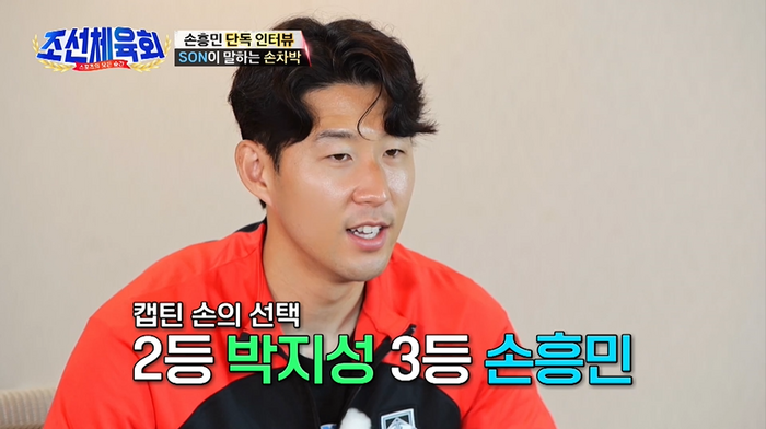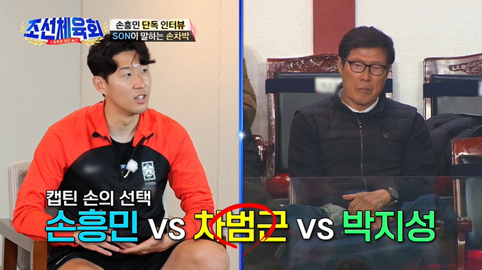 이날 전현무, 이천수, 허재, 김병현은 손흥민과 단독 인터뷰를 진행했다. 전현무는 손흥민에게 “그 유명한 손차박(손흥민vs차범근vs박지성) 논쟁 아시는가”라며 당대 축구 레전드 삼인방 중 누가 가장 뛰어나다고 생각하는지 물었다.