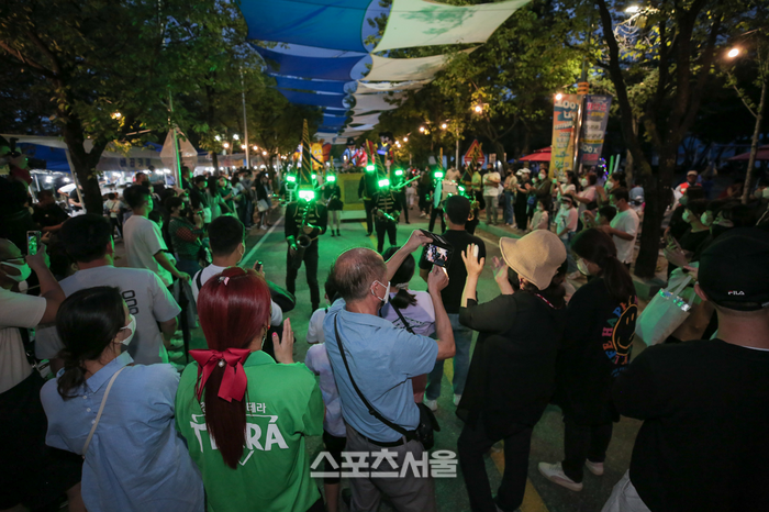 먼저 여성 프로 마칭밴드인 ‘퀸즈밴드’, 아프리카 타악 그룹 ‘아냐포’, 타악 퍼포먼스그룹 ‘잼스틱’ 등이 총출동해 축제장 일원에서 퍼레이드를 펼치며 축제 기간 축제장을 뜨겁게 달굴 예정이다.