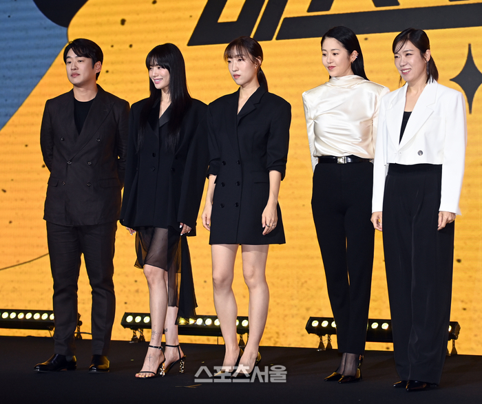 배우 안재홍, 나나, 이한별, 고현정, 염혜란이 16일 서울 JW 메리어트 동대문 스퀘어에서 열린 넷플릭스 새시리즈 ‘마스크걸’ 제작발표회에서 포토타임 포즈를 취하고 있다. 2023.08.14.