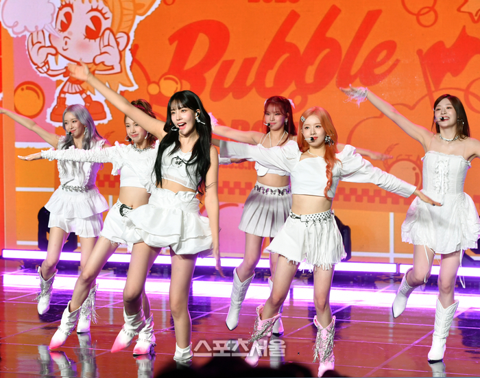 타이틀곡 ’버블‘은 경쾌한 신스 베이스 사운드와 한번 들으면 잊혀지지않을 중독적인 훅이 포인트인 곡으로 스테이씨만의 긍정적이고 유쾌한 메시지를 풀어냈다. 수민,시은,아이사,세은,윤,재이 . 2023.08.16.