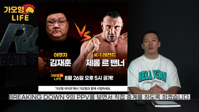정 회장은 “김재훈 선수의 상대는 제롬 르 밴너 선수로 확정됐다. 사실 제롬 르 밴너 선수와 김재훈 선수가 한 달 전에 페이스오프를 했다. 이 내용을 스포할 수 없기 때문에 비밀로 해왔다”라며 “드디어 오늘 아사쿠라 미쿠루 채널(‘브레이킹다운 9’)에서 발표했기 때문에 저희 채널에서도 발표하는 거다”라고 밝혔다.