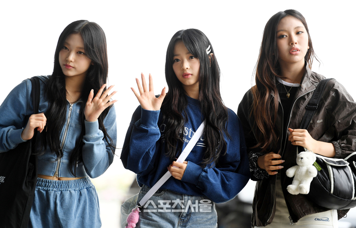걸그룹 뉴진스 해린, 하니, 혜인(왼쪽부터)이 17일 일본에서 열리는 뮤직 페스티벌 슈퍼소닉에 참가하기 위해 김포공항에 들어서고 있다. 2023. 8. 17. 김포공항 | 최승섭기자 thunder@sportsseoul.com