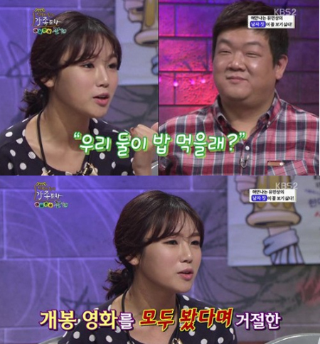 이날 MC들은 최근 '유민상 짝사랑녀'로 화제가 됐던 홍예슬에게 "유민상과 영화를 본 적이 있냐"고 돌직구를 날렸다.