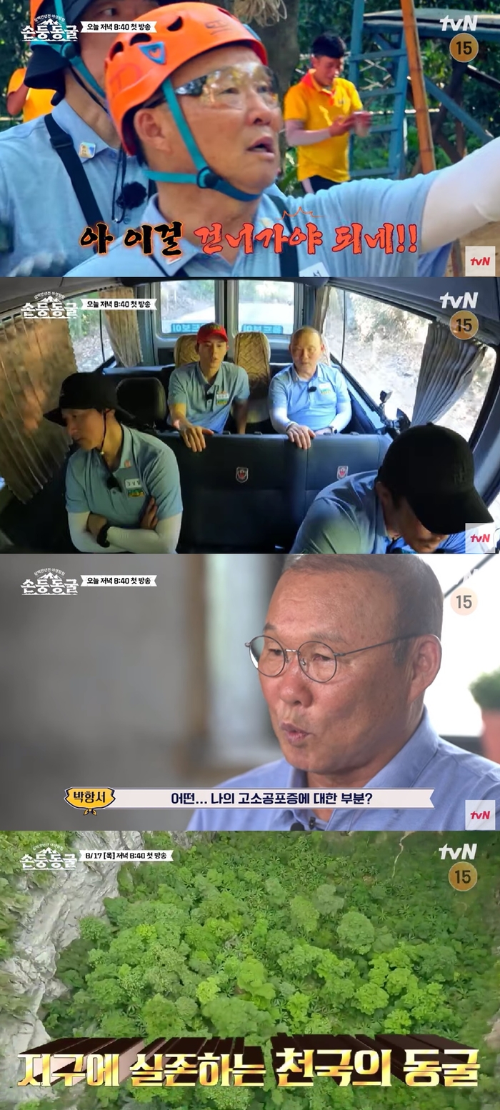 박 감독을 비롯해 전 국가대표 안정환, 김남일, 격투기 스타 추성훈, 만능 체육인 가수 김동준은 선공개 영상에서 베트남 퐁내케방 국립공원에 위치한 손둥 동굴 탐사에 앞서 고공 적응에 나섰다.