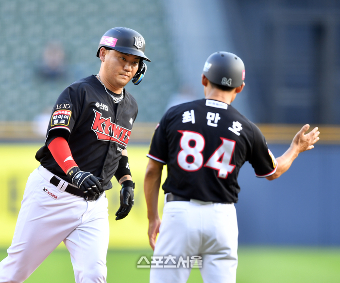 KT는 최근 박병호가 종아리가 좋지 못해 제대로 뛰지 못하고 있다. 4번 타자가 자리를 비웠다. 어쨌든 팀은 잘 나가고 있지만, 주축이 빠진 것이 반가울 리는 없다. 장성우까지 부진하니 걱정이 될 수밖에 없었다.