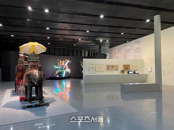 백남준의 글과 작품을 함께 살펴볼 수 있는 전시 구성으로, 백남준아트센터 소장품 ‘코끼리 수레(2001)’ 외에도 1994년 미국 순회 개인전에서 선보였던 어린이 TV 로봇 ‘해커 뉴비(1994)’, 13점 대형 연작 ‘나의 파우스트’ 중 하나인 ‘나의 파우스트: 자서전(1989-1991)’, 광복 50주년 광고 계기 롯데칠성 커미션 작품 ‘꽃가마와 모터사이클(1995)’ 등 주요 작품을 대여해 각 소장처 내부 전시 외에는 20여 년만에 백남준아트센터에서 처음 소개했다.