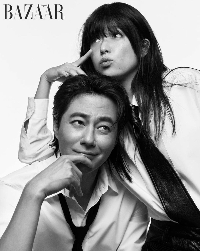 패션 매거진 하퍼스 바자는 18일 ‘무빙’에서 부부로 호흡을 맞춘 조인성과 한효주의 유쾌한 케미가 고스란히 담긴 화보를 공개했다. 모델 출신답게 183cm 큰 키를 자랑하는 조인성과 172cm의 한효주는 비주얼에서도 커플 아우라를 발산했다.