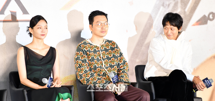 배우 이솜, 이동휘, 강동원이 22일 용산아이파크몰에서 열린 영화 ‘천박사 퇴마연구소:설경의 비밀’ 제작보고회 무대에 올라 토크쇼에 참여하고 있다.
