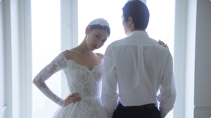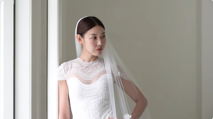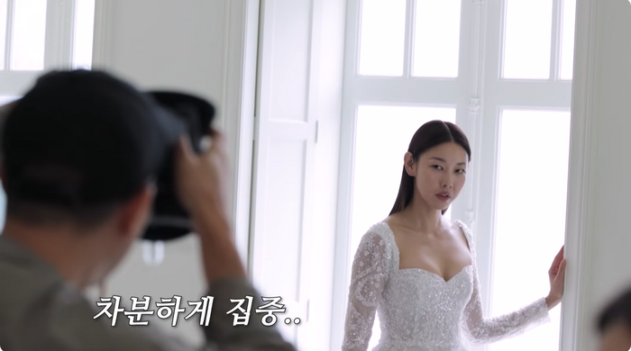헤어 스타일에 대해 “어떤 신부가 이런 반쪽 머리를 하냐. 너무 슬프다. 제일 예뻐야 하는데 나는 맨날 이거 아니면 뒤로 깐 머리다”라며 웨딩 화보에 진심인 모습을 보였다.