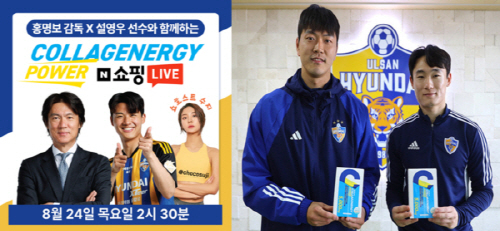 울산현대 축구단과 더코리아콜라겐의 콜라보 쇼핑라이브는 24일 오후 2시 30분부터 3시 30분까지 1시간 동안 네이버 쇼핑라이브 ‘더코리아콜라겐’ 공식 채널에서 시청할 수 있다.