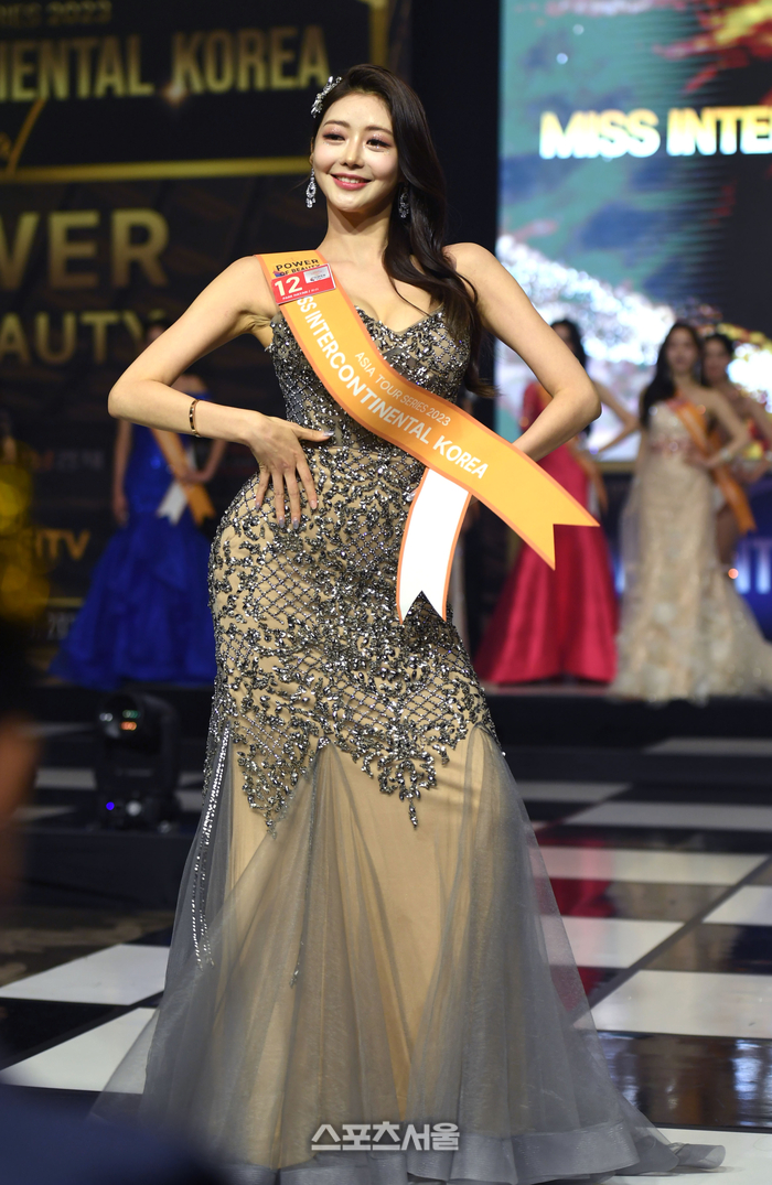 세미위너를 수상한 박하얀이 23일 서울 여의도 콘래드호텔에서 열린 '2023 미스인터콘티넨탈 코리아' 결선에서 드레스 퍼레이드를 하고 있다. 2023. 8. 23. 최승섭기자 thunder@sportsseoul.com