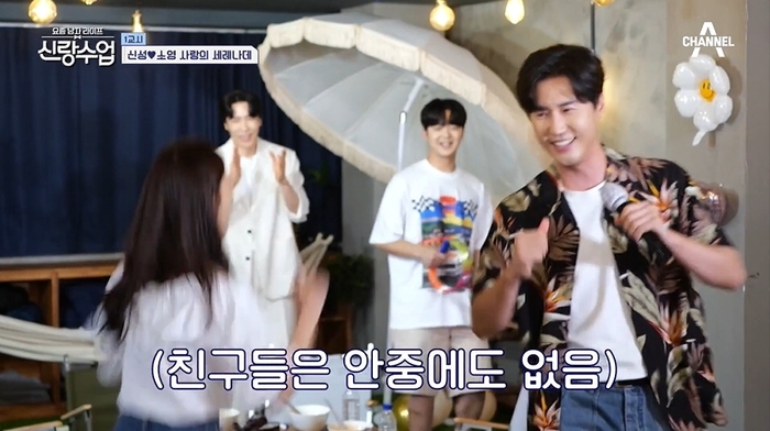[스포츠서울 | 김태형기자] 가수 신성이 동료들 앞에서 코미디언 박소영과 핑크빛 분위기를 자아냈다.
