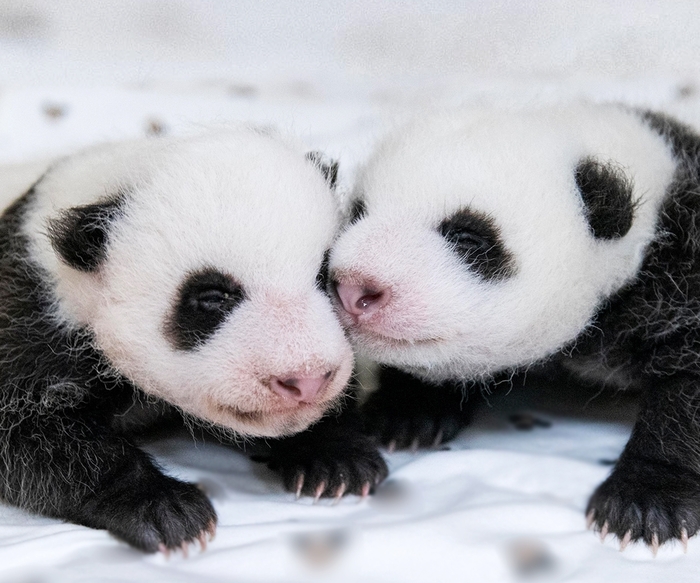 지난달 7일 태어난 쌍둥이 판다는 모두 암컷으로 국내 유일의 자이언트 판다 커플 러바오(수컷, 11세)와 아이바오(암컷, 10세) 사이에서 태어났다. 태어날 당시 몸무게는 180g과 140g이었으나 생후 50일 가까이 된 현재는 2kg 정도로 10배 이상 몸무게가 늘며 폭풍 성장 중이다.