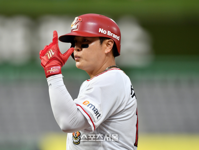 SSG 1번타자 추신수가 24일 인천SSG랜더스필드에서 열린 2023 프로야구 SSG랜더스와 NC다이노스의 경기 2회말 무사 1루에서 안타로 출루하고 있다.‘ 2023.08.24.