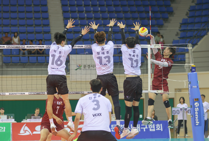 삼각편대가 고르게 활약했다. 아웃사이드 히터 박승수(OK금융그룹) 15점, 이준(대한항공) 14점, 아포짓 스파이커 박예찬(경희대)이 8점을 올렸다.