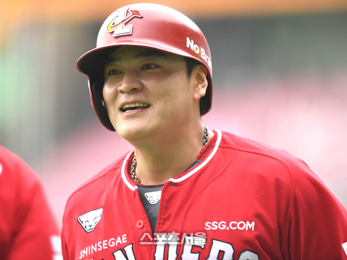 SSG 추신수가 27일 잠실야구장에서 열린 2023 KBO리그 두산과 경기 1회초 무사2루 최지훈 번트 때 상대실책을 틈 타 득점을 하고 덕아웃으로 들어오고 있다. 2023. 8. 27. 잠실 | 최승섭기자 thunder@sportsseoul.com