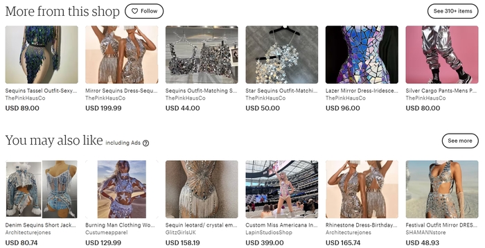 실제 엣시의 쇼핑몰에는 화려한 은색 의상 아래에 “비욘세 콘서트에 이 옷을 입고 갈거다”라는 글들이 이어져 눈길을 끈다.