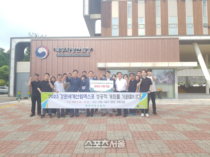 [스포츠서울ㅣ춘천=김기원 기자] (재)강원세계산림엑스포조직위원회(조직위원장 김진태)는 8월 28일(월) ‘2023 강원세계산림엑스포’ 성공 개최를 기원하며 동부지방산림청(청장 최수천)과 북부지방산림청(청장 임하수)에서 입장권을 각각 2천매씩 구매 약정했다고 밝혔다.
