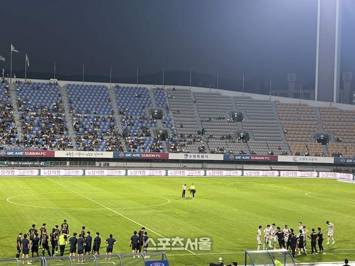 수원FC와 인천 유나이티드의 하나원큐 K리그1 2023 28라운드가 진행됐던 지난 25일 수원종합운동장. 0-0으로 팽팽하게 흘러가던 경기가 예상치 못한 상황으로 잠시 중단됐다.