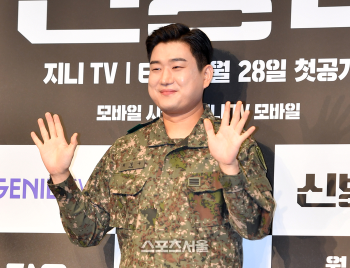 배우 남태우가 28일 신도림 디큐브시티에서 열린 지니TV오리지날 ‘신병 시즌2’ 제작발표회 무대에 올라 포토타임을 갖고 있다.