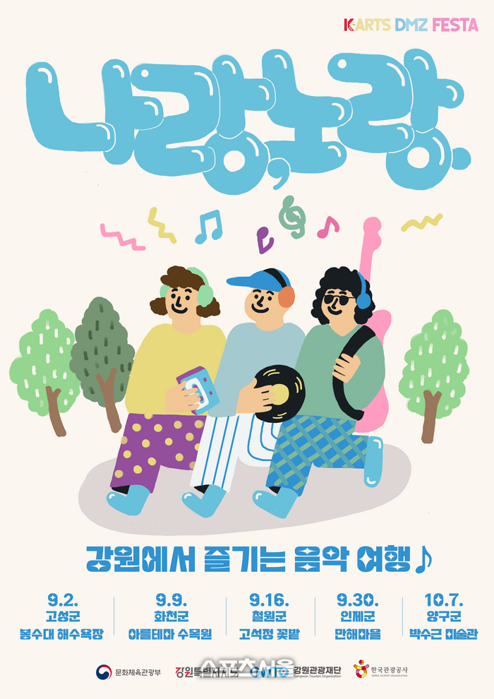 [스포츠서울ㅣ춘천=김기원 기자] 강원특별자치도와 강원관광재단은 접경지역 5개 군(철원, 화천, 양구, 인제, 고성)의 지역별 특화 콘텐츠를 발굴하여 다양한 체험 프로그램과 지역 관광지를 연계한 테마 음악 여행 행사인 ‘나랑, 노랑. 강원에서 즐기는 음악여행’을 오는 9월 2일 고성을 시작으로 9일 화천, 16일 철원, 30일 인제, 10월 7일 양구 총 5회에 걸쳐 각 지역에서 개최한다.