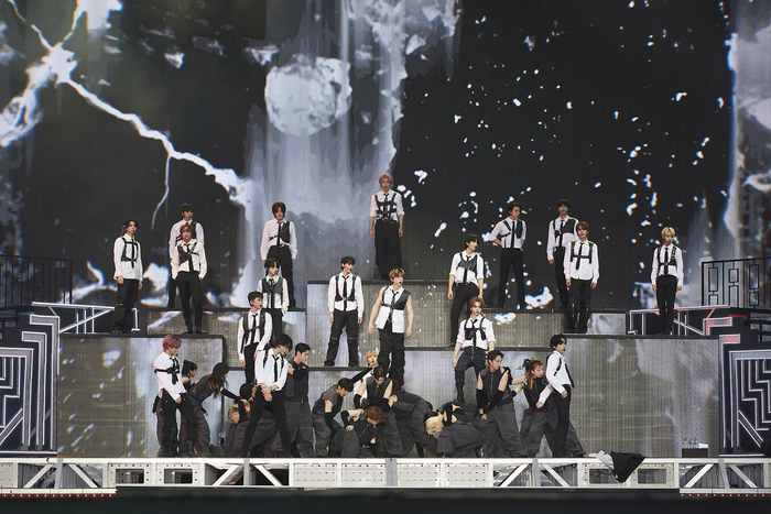 데뷔 후 처음으로 열린 오프라인 단체 콘서트에서 엔시티 그룹의 힘이 여실히 발휘됐다. 엔시티는 정규 4집 발매에 앞서 지난 26일 인천 문학경기장 주경기장에서 단체 콘서트 ‘엔시티 네이션: 투 더 월드’를 열고 팬들과 만났다. 곡마다 다양한 멤버 조합이 가능한 엔시티 브랜드만의 독보적인 아이덴티티와 파워를 체감할 수 있는 특별한 공연으로 총 40곡을 꽉 채웠다.
