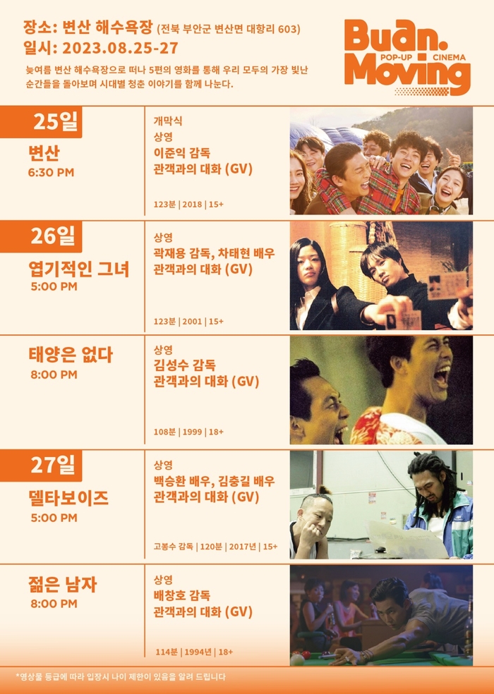 지난 25일부터 27일까지 사흘동안 전북 부안군 변산해수욕장에서 ‘청춘’이라는 테마로 열린 이 행사는 개막작인 영화 ‘변산’부터 ‘엽기적인 그녀’, ‘태양은 없다’ (26일), ‘델타보이즈’, ‘젊은 남자’(27일) 등 5편의 영화를 상영했다.