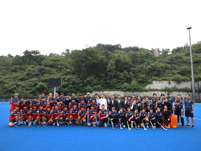 대한하키협회 이상현 회장은 “신한금융지주 진옥동 회장이 29일 진천 국가대표 선수촌을 방문해 2022 항저우 아시안게임에 출전하기 위해 맹훈련 중인 남녀 하키 국가대표 선수단을 격려했다”고 밝혔다. 이번 격려 행사에는 대한하키협회 이상현 회장, 신정희 부회장과 신한금융그룹에서 진옥동 회장, 안준식 부사장이 참석했다.
