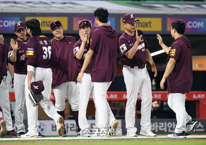 키움 히어로즈 홍원기 감독(오른쪽 둘째)이 31일 인천 SSG랜더스필드에서 열린 2023 KBO리그 SSG 랜더스와 경기에서 승리한 뒤 선수들과 하이파이브를 나누고 있다. 연장 12회 승부 끝에 승리한 키움은 3연패에서 탈출했다. 2023. 8. 31. 문학 | 박진업기자 upandup@sportsseoul.com
