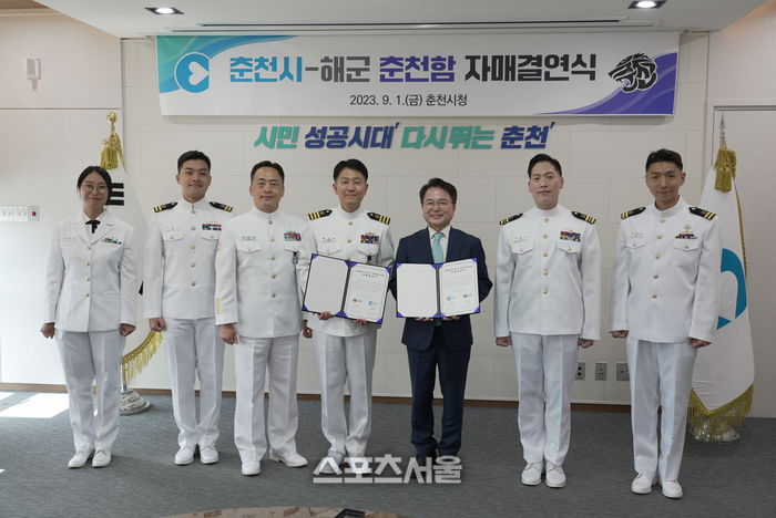 [스포츠서울ㅣ춘천=김기원 기자] 춘천시에 따르면 1일 오후 2시 접견실에서 친선 교류 활동과 협력을 위한 춘천시-춘천함 자매결연 체결식이 개최됐다.