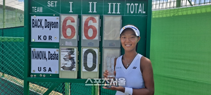 백다연은 이날 미국의 데이샤 이바노바를 2-0(6-3, 6-0)으로 완파하고 올해 국제대회 두번째 우승을 챙겼다. 백다연은 지난달 열린 ITF 삿포로 대회 여자단식에서도 우승한 바 있다.