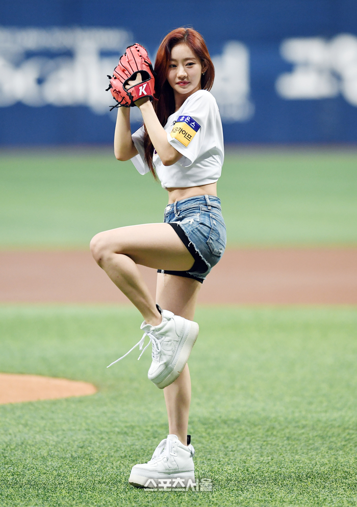 그룹 키스오브라이프(KISS OF LIFE)의 쥴리가 3일 고척스카이돔에서 열린 2023 KBO리그 키움 히어로즈와 KT 위즈의 경기에 앞서 시구를 하고 있다. 2023. 9. 3. 고척 | 박진업기자 upandup@sportsseoul.com