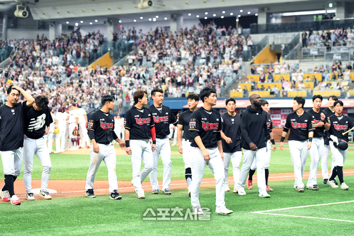 KT 위즈 선수들이 3일 고척스카이돔에서 열린 2023 KBO리그 키움 히어로즈와 경기에서 패한 뒤 팬들에게 인사를 하고 덕아웃으로 들어가고 있다. KT는 3연패에 빠졌다. 2023. 9. 3. 고척 | 박진업기자 upandup@sportsseoul.com