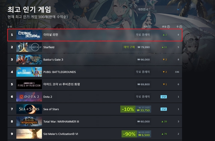 실제로 ‘이터널 리턴’은 정식서비스를 시작한 7월 20일 스팀 플랫폼 국내 인기 순위 1위에 올랐고 한 달 이상 지난 9월 1일 기준으로도 1위를 지키고 있다.