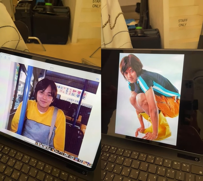 이날 강동원은 과거 사진을 공개했다. “이거 20대 초반 땐데 광고 촬영 중이었던 걸로 기억한다”라며 추억에 잠겼다. 이어서 “이건 모델 활동할 때고 의류 촬영이었다. 고수 선배님이랑 같이 촬영을 했다”라고 설명했다.
