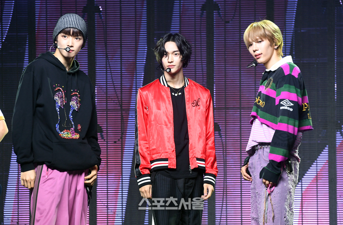 라이즈(RIIZE)의 성찬(왼쪽)과 원빈(가운데), 쇼타로가 4일 서울 용산구 블루스퀘어에서 진행된 첫 싱글 앨범 '겟 어 기타(Get A Guitar' 발매 기념 기자간담회에서 퍼포먼스를 선보이고 있다. 그룹 라이즈는 '성장하다(Rise)'와 '실현하다(Realize)'는 뜻의 영단어를 더해 '함께 성장하고 꿈을 실현해 나아가는 팀'의 의미를 담고 있으며 멤버 성찬, 승한, 원빈, 앤톤, 소희, 쇼타로, 은석으로 구성되어 있다. 2023. 9. 4. 박진업기자 upandup@sportsseoul.com