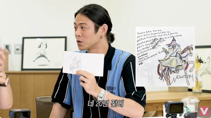 빈지노는 지난 7월 정규 2집 ‘노비츠키(NOWITZKI)’를 발매했다. 그는 “속지에 있는 글씨보다 그림에 초점을 맞추면 더 재밌다”라며 아내 스테파니 미초바가 2004년에 그렸다는 장군 그림을 소개했다.
