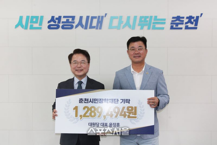 전국 | 강원 윤장훈 대원당 대표, 로또복권 3등 당첨금...춘천시에 장학금 기탁 입력2023-09-06 10:56:25 북마크 페이스북 트위터 SNS 더보기 가글자크기설정 인쇄 SNS 더보기 닫기 네이버밴드 네이버블로그 URL복사 글자크기 설정 메뉴 닫기 글자크기 설정 시 다른 기사의 본문도동일하게 적용됩니다. 가 가 가 가 가 [스포츠서울ㅣ춘천=김기원 기자] 윤장훈 대원당 대표는 지난 5일 춘천시청을 찾아 춘천시민장학재단에 로또복권 3등 당첨금 전액인 128만9,494원을 기탁했다.acdcok@hanmail.net 기사추천 0