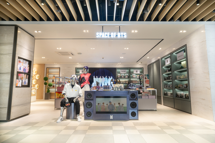 스페이스 오브 비티에스는 방탄소년단 공식 상품 판매 스토어로 면세점 중 유일하게 신세계면세점이 운영하고 있다. 스토어에서는 방탄소년단 음악과 뮤직비디오도 감상할 수 있다.